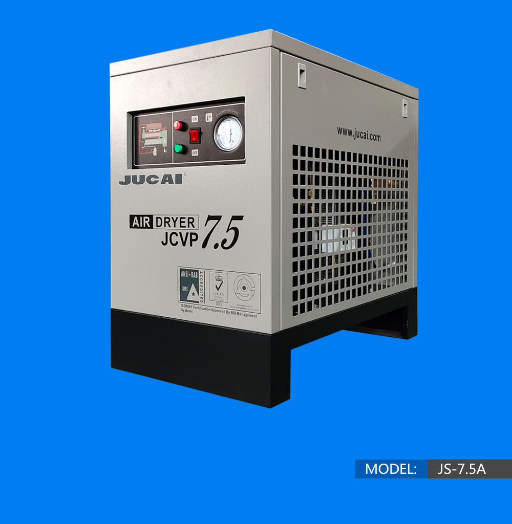 Brand:JUCAI Model:JS-7.5A Exhaust volume:1m3/min Compressed medium:Air Working principle:Air Dryer Performance:Low noise, power saving