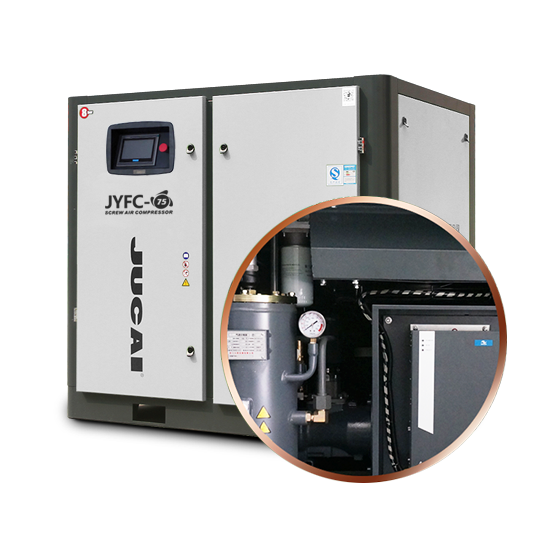 JUCAI螺桿空壓機主機,大轉子低轉速設計,采用先進的螺旋齒型技術,瑞典原裝進口SKF圓錐滾柱軸承,噪音低,能耗低。